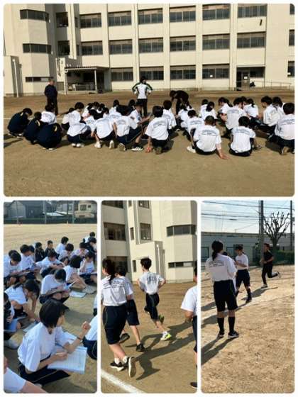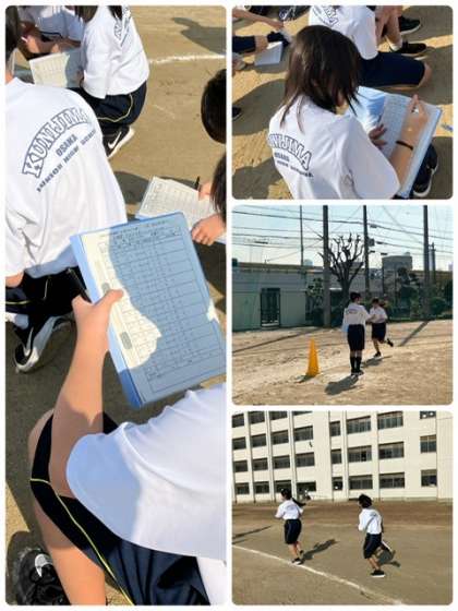 3学期に入って、体育科の授業は、「長距離走の練習」の単元に入りました。今日は、「12分間走のタイム測定」を行いました。2人の生徒がペアを組み、一方が走り、もう一方が走った距離を確認して結果の記録を行いました。走る生徒は、自分の記録を伸ばすために一生懸命に走っていました。記録の生徒は、ペアの生徒だけでなく、すべての走っている生徒に、「がんばれ!」「早いぞ!」「すごいな」などと声をかけて応援する姿が見られました。