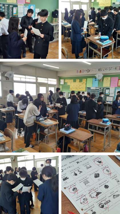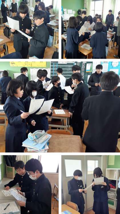 制限時間の10分の中で、16人に声をかけ、地震の冬休みを振り返りながら会話をしていました。
