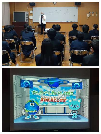 ゲストティーチャーは、本校の学校薬剤師の先生です。前半は資料映像のDVDを視聴し、後半は薬剤師先生に講話をしていただきました。