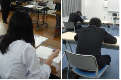 午前中は準2級・3級・4級の検定、午後からは5級の検定が行われました。生徒たちは緊張した面持ちで参加しました。試験監督の説明を聞き、テストが始まると、真剣に問題に取り組みました。