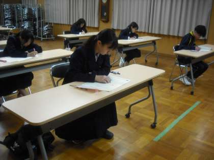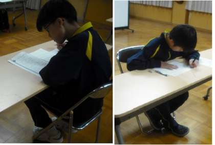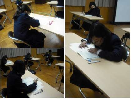 筆記テストの後はリスニングテストが始まり、音声に集中する姿が見られました。