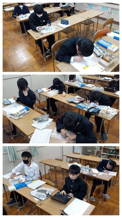 デザインはすでに完成し、今日の授業では、トレーシングペーパーでデザインの型取りや、早い生徒は着色の作業に入っていました。やはり、色が入ってくると、雰囲気も出て、いい作品となりそうですね。