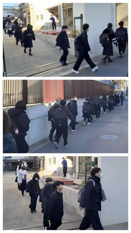 今日も寒い朝となりました。1年生はいつもより少し早い登校です。