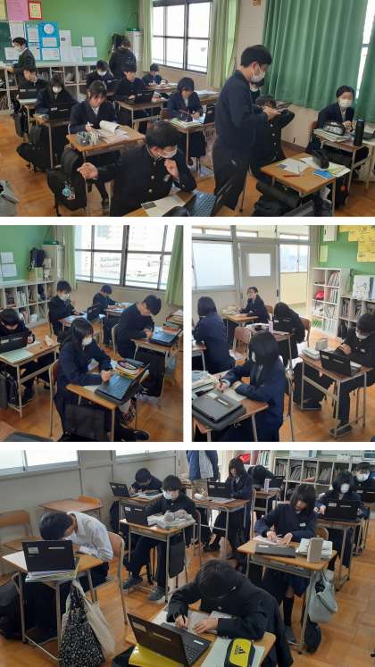 作成後は3〜4人の国語班で自分の考えた文章を発表し共有しあいました。その後、意見交流(アドバイスタイム)を行い、自身の文章の校正や作成の手立てとしました。