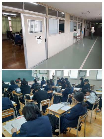前半は、廊下より2クラス全体に向かって、先生から、今までも伝えてきたことですが、改めて、受験日当日について、ていねいに説明を行いました。