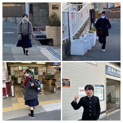 待ち合わせ場所には、余裕をもっての集合時間の設定にもかかわらず、5分、10分と早くに集まってきていました。そのため、これまた、乗車予定の1・2本前の電車に乗車して、それぞれの高校に向けて、受験予定の生徒は無事に出発していきました。