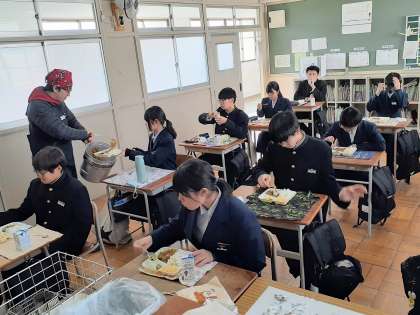きゅうりとコーンのサラダは、輪切りのきゅうりとコーンをそれぞれ湯がき、ワインビネガー、砂糖、塩、しょう油を合わせて煮、最後にオリーブ油を加えて、配缶時にかけて和えられています。