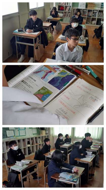 1年生の理科の学習の様子です。新しい内容で、「地球」に関する学習です。今日は「第2章ゆれる大地 3日本列島の地震」について詳しく学習が進められていました。