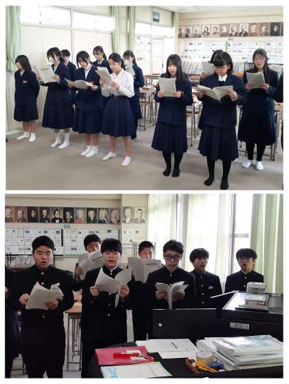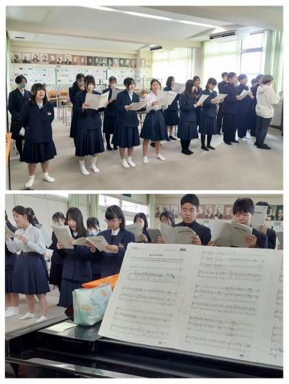 私立の入試も終わり、卒業式まであと1ケ月ほどとなりました。音楽室では3年生が卒業式に歌う「旅立ちの日に・・・」の練習をしていました。