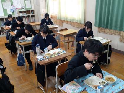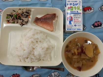 赤魚のレモンじょう油がけは、料理酒で下味を付けた赤魚を焼き上げた後、しょうゆ、みりん、湯を合わせて煮立て、最後にレモン果汁も加えた「たれ」が配缶時にかけられていました。赤魚は給食によく使われるお魚で、白身で脂のりもほどよく、子どもたちも好んで食べてくれています。