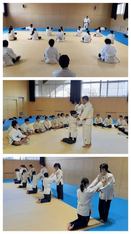 2年生の体育の学習の様子です。2年生も先日より、男女共修で、格技室にて柔道の学習を行っています。