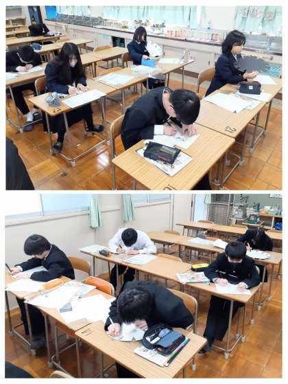 生徒たちは思い思いにデザインをし、12コマのエンドレスとなるような、連続したイラストを考えていました。