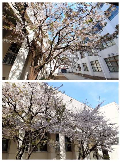 中庭の満開だった桜も、日々に、残念ながら花びらが散り始め、代わって新緑の小さな葉が顔を出し始めました。この後、一気に景色が変わりますね。