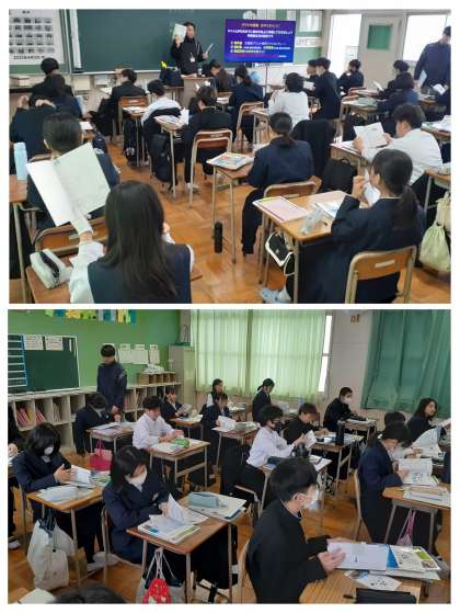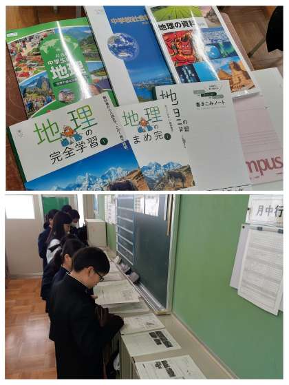 今日は1回目の授業なので、中学校の社会科での学習の進め方についてのガイダンスでした。1年生では最初に「地理」分野の学習からのスタートとなります。