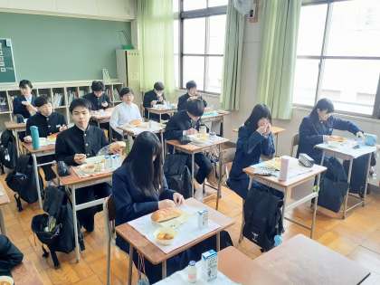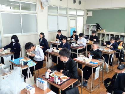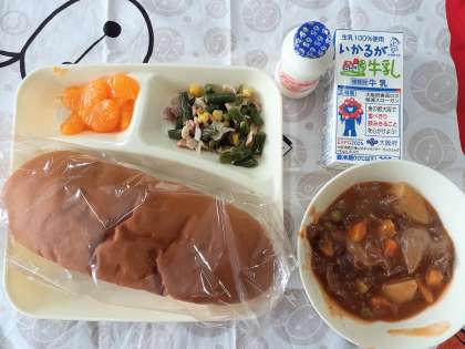 ビーフシチューは、白ワインで下味を付けた薄切りの牛肉、玉ねぎ、人参を綿実油で炒め、お湯を加えて、じゃがいもを煮て、ケチャップ、トマトピューレ、ローレル、とんかつソース、ウスターソース、水溶き上新粉、砂糖、塩コショウ、チキンブイヨンで味付けして煮込んでいます。仕上げには、グリーンピースも加えられ、本格的なシチューとなっています。パンをちぎり、シチューに浸けて食べる姿もありました。