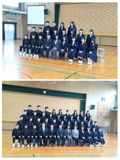 3年生→2年生→1年生の順に撮影を行いました。どの学年も素早い行動で、指示通りにひな壇に並び、あっという間に全クラスの撮影が終わりました。
