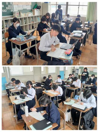 2年生は、5・6時間目に、昨日に行った「大阪・関西万博」のまとめを行いました。見学し、入手した国のパンフレットをもとに、プリントにまとめていきました。