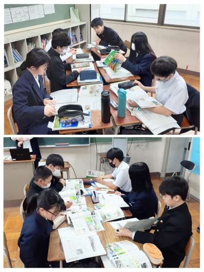 連休後の9日の時間に「発表」し、クラス内で「共有」する予定です。