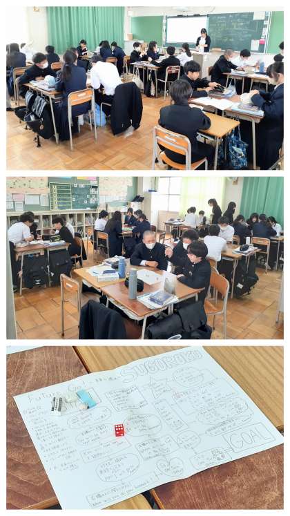 今日の学習は助動詞「will」の活用についてです。「will」は未来形の助動詞で「〜するつもり」となります。「主語 + will + 動詞原形 + 〜 .」という、基本となる文法を学んだ後、多様な「未来形・will」の活用を盛り込んだ、先生のお手製の「SUGOROKU」ゲームで盛り上がりながら、学習の定着をめざしました。