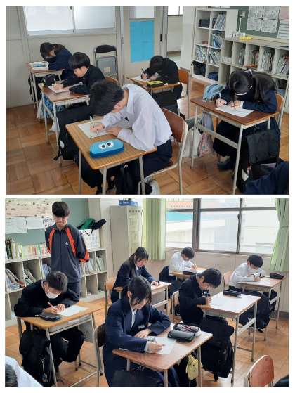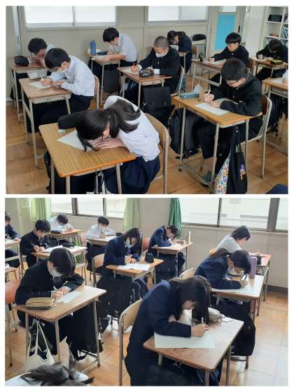 テスト時間は15分間でしたが、生徒の粘りもあって、3分間ほど延長タイムもありました。解答は「漢字」です(さいたま市以外)。スピード勝負で、記憶に残っているか、思い出せないか・・。時間ギリギリまでペンを動かしていました。