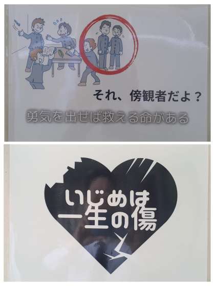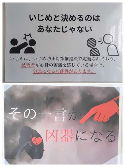 昨日に紹介した、生徒会執行部の取り組みです。4種類のポスター(掲示物)が作成され、各階の廊下に掲示されています。