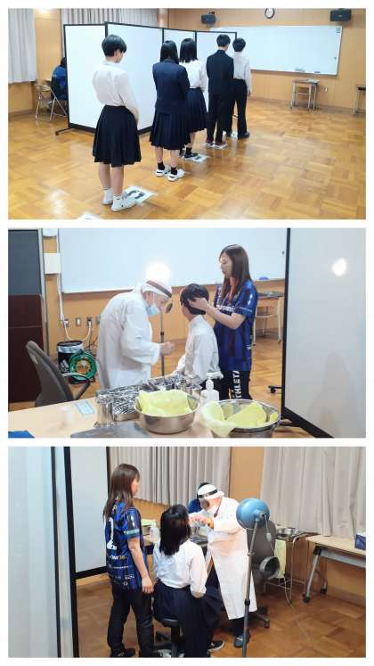 3年生から順に、2年生、1年生へと、生徒たちも検診場所の多目的室では静かに自分の順番を待ち、検診の流れも確認できており、スムーズに進みました。