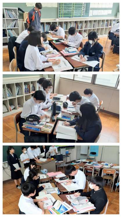 今日はその発表です。3班さんが前に出てきて「日本のさまざまな災害について」のプリントの内容について、他のクラスメートに説明を行っていました。きちんと伝えることって難しいですね。