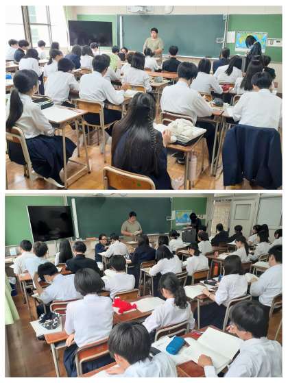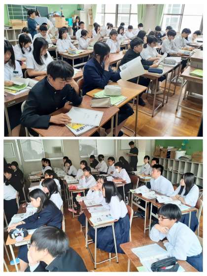 まず、5時間目は荷物点検を多目的室で行い、続いての6時間目はしおりを使っての、最終的な諸注意を行いました。また、その後、大塚美術館での見学のポイント、鶉飛行場や特攻についての平和学習のおさえを行いました。