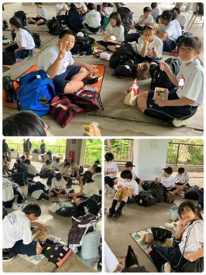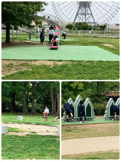 昼食タイムは、中央休憩所でお弁当を食べました。その後、遊具で遊びました。