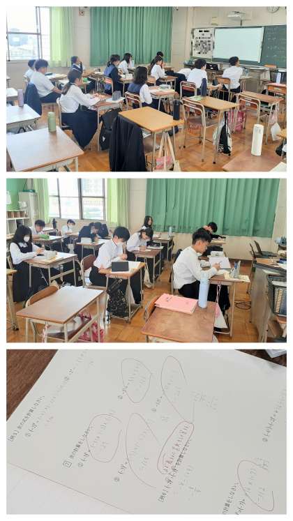 例題の後、プリントにあるたくさんの問題に取り組んでいました。様々な要素に惑わされることなく計算を進めていきましょう。