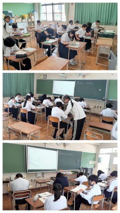 1年生はこの単元では学級を2分割にし、2つの教室を使った「少人数分割授業」を行っています。