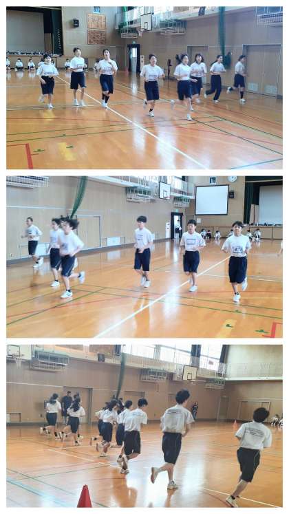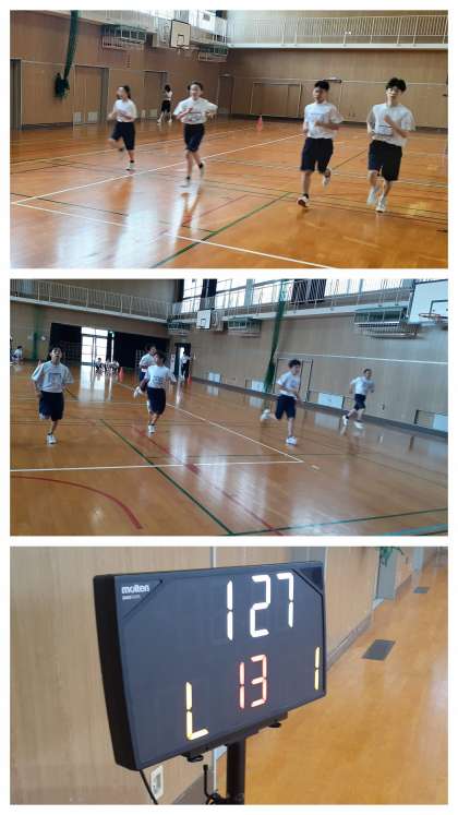 体育館での実施で、持久力を測定します。朝からエアコンを稼働させ、気温と湿度を調整しての実施としました。