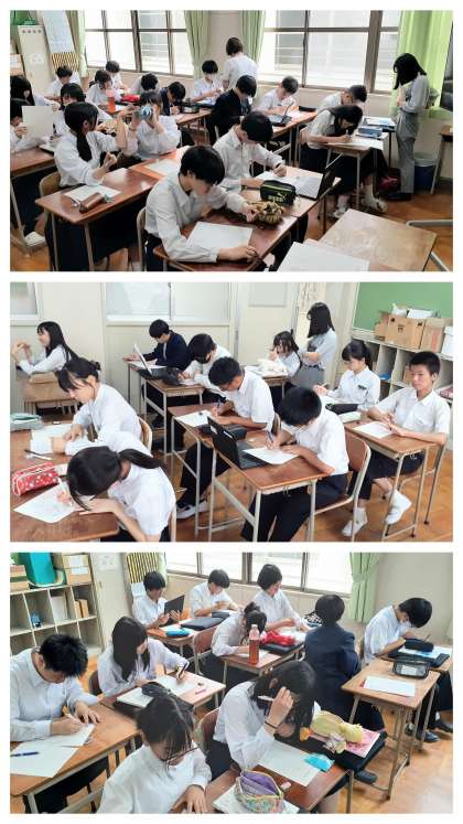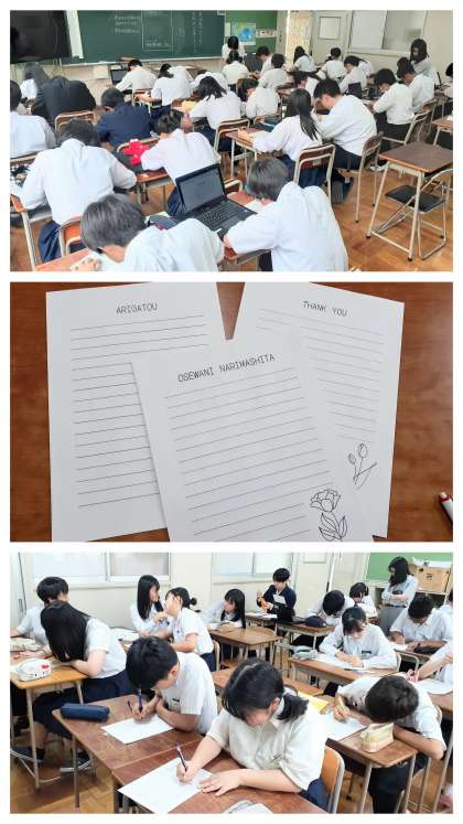 3年生の修学旅行の事後取り組みです。5時間目を使って、2日目のお昼から3日目の朝にかけてお世話になった民泊のお家の皆さんへの「お礼状」を書きました。
