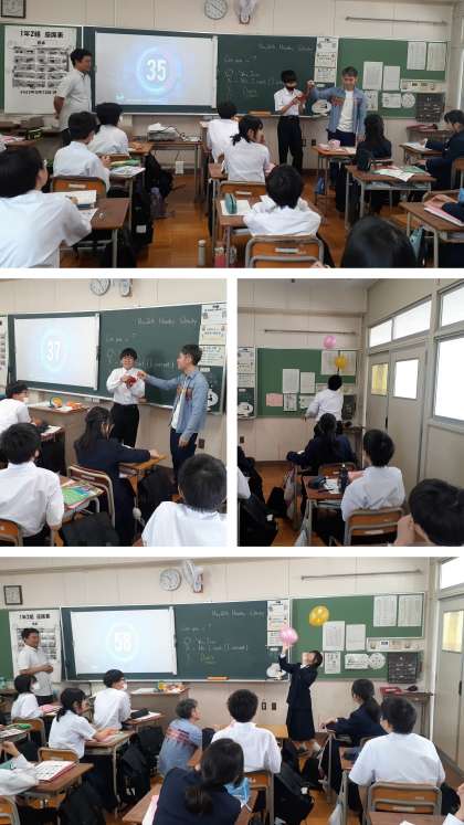 と、生徒たちが前に出てきてチャレンジし、成功すれば「YES , I CAN .」と、失敗すれば「NO , I CAN’T .」と答えていきました。
