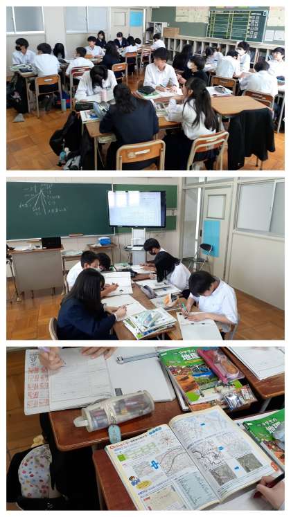 「地形図の読み方」という内容の学習を進めており、前回の授業では「縮尺」、「16方位」、「図記号」を学習しました。