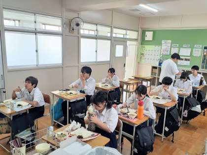 赤魚のしょうゆだれかけは、料理酒で下味を付けた赤魚を焼き上げた後、しょうゆ、みりん、湯を合わせて煮立てた「たれ」がかけられていました。赤魚は給食によく使われるお魚で、白身で脂のりもほどよく、子どもたちも好んでたくさん食べてくれています。