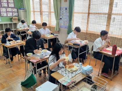 グリーンアスパラガスのソテーは、3cmほどにカットし下茹でしたアスパラガスと子どもたちの大好きなベーコン、さらにコーンも加え、シンプルに塩コショウで味付けし炒めたものです。アスパラガスは新鮮で、シャキシャキ歯ごたえでおいしかったです。