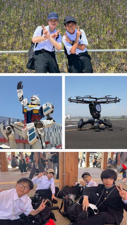 午前中は、到着後に記念撮影を行い、お昼の集合場所(大屋根リングの西の端)まで移動してからの、約1時間の班別自由行動です。