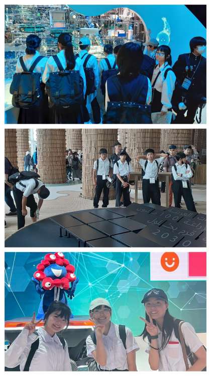 生徒たちはお目当ての国ごとのパビリオンや、たくさんの国の展示が入ったコモンズ館を見学していました。