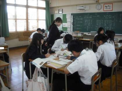 今日は、教科書の『間の文化』を読み、「物と物の間の何もない空間」「何もない時間」「人と人の間の心理的な距離」について、日本と西洋で抜き出しました。班で、各自の意見を共有し、発表しました。