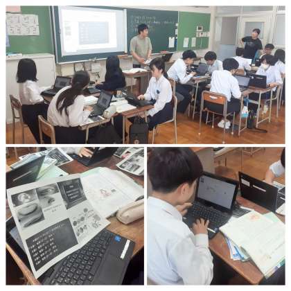 まずは先生が「味覚」について作成したスライドを基に注意点・ポイントを聞き、4人のグループで、「嗅覚」「触覚」「聴覚」「視覚」の担当を決めました。