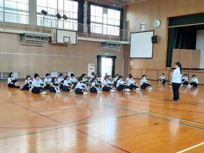 金曜日の朝です。学年集会です。生徒の登校時間からすでに夏を感じさせる青空、日差し、高い気温となっています。