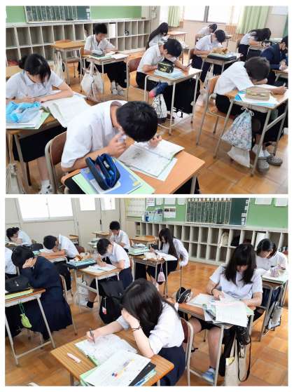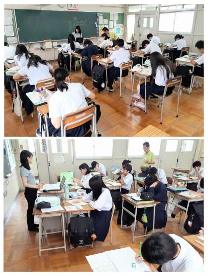 3年生を2分割した習熟度別の編成ですが、どちらのクラスもテスト範囲の学習は既に終えているようで、明日からの期末テストを控え、テスト前の自学自習でした。