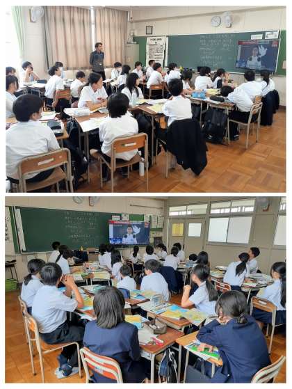 授業の前半は、戦後80年の「慰霊の日」を迎えた昨日の23日、沖縄全戦没者追悼式が行われ、その中で、地上戦を生き延びた体験者の孫である小学生が「平和の詩」を朗読しました。85歳となる祖母が一年に一度だけ歌うという「おばあちゃんの歌」の意味を知った時の自身の思いをつづり、「命を奪い苦しめる戦争を二度と起こさない」と宣言したビデオ映像が教材でした。
