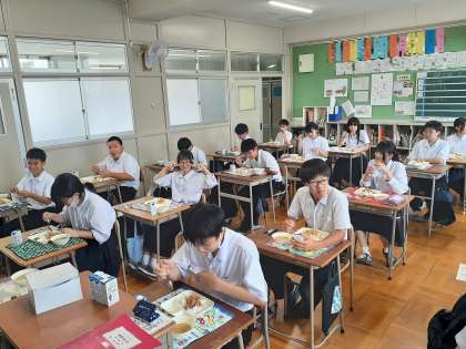 豚ひき肉とニラのそぼろ丼は、しょうがとにんにくを綿実油で香ばしく炒めた後、たっぷりの豚ひき肉、人参、玉ねぎを加えて炒め、しょうゆ、砂糖で味付けして、最後にニラを加えて完成です。配食時にご飯の上にかけていただきました。お替りしてたくさん食べてくれました。