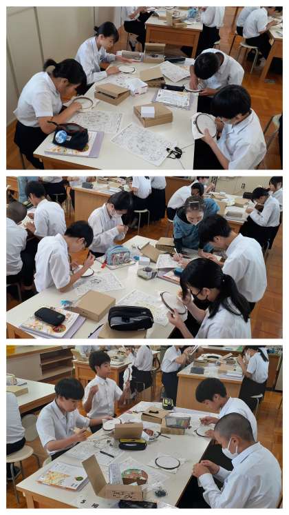 今日は針作業の第1回目ですので、先生からの詳細な説明を聞き、ひと針目の作業に移りました。ぎこちない動きの生徒の姿でしたが、この作業も慣れです。次回からはどんどんとスピードアップして進むことでしょう。