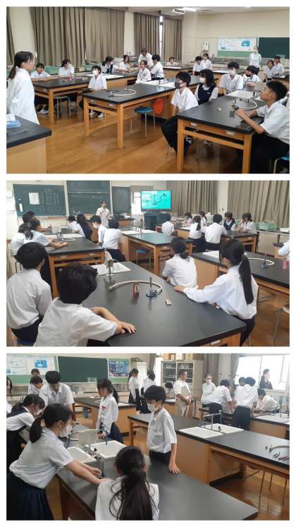 授業の冒頭、前の時間の復習をていねいに行い、4人班で1人ずつの点火練習をしました。