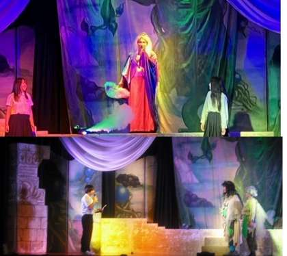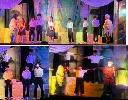 5・6限、体育館で芸術鑑賞会を実施しました。劇団 青い鳥ティアティカル・カンパニーをお招きし、ミュージカル『真夏の世の夢』より「妖精パックとグッドフェロー」の公演を鑑賞しました。音と鮮やかな光に包まれた本物のミュージカルを体感し、皆、時間を忘れ楽しんでいました。公演後には、ワークショップ(演劇教室)が行われ、各学年からの代表生徒や教員が参加しました。「声の出し方」「パントマイム」「舞台の装置・機器(スモークマシン、舞台照明)」など楽しく学びました。