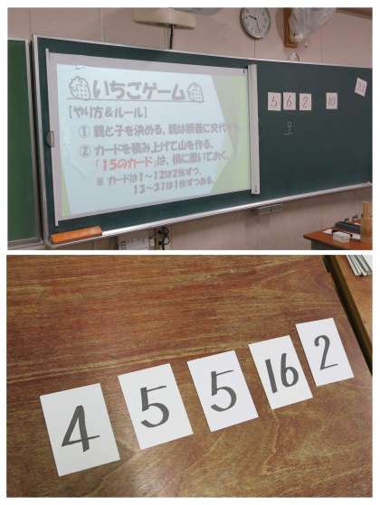 1年生の数学の学習の様子です。本日が授業の最終日、今日の学習は、リラックスタイムとして「いちごゲーム」大会の開催です。