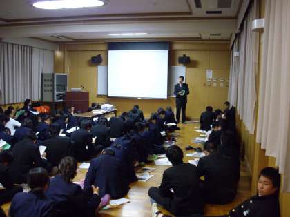 今日の5・6時間目、3年生は高校の先生をお招きして、進路講話を拝聴しました。先日の実力テストの結果のせいか、あるいは来週から始まる進路懇談のせいか…、どの生徒のまなざしもまっすぐ進路の「夢」をみつめ聞き入っていました。